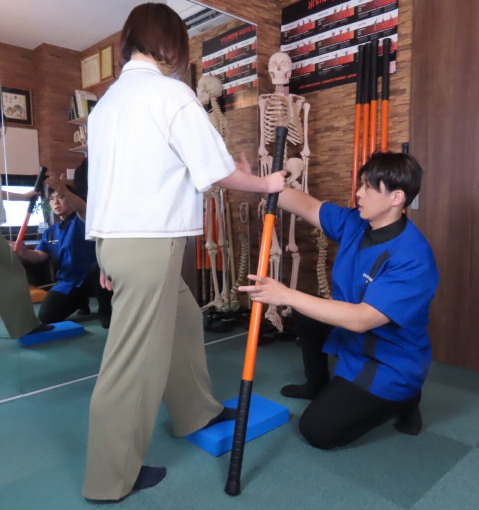 施術を受けるだけでは元に戻るが、運動で負担のかからない体の使い方のクセが根本的にみにつく