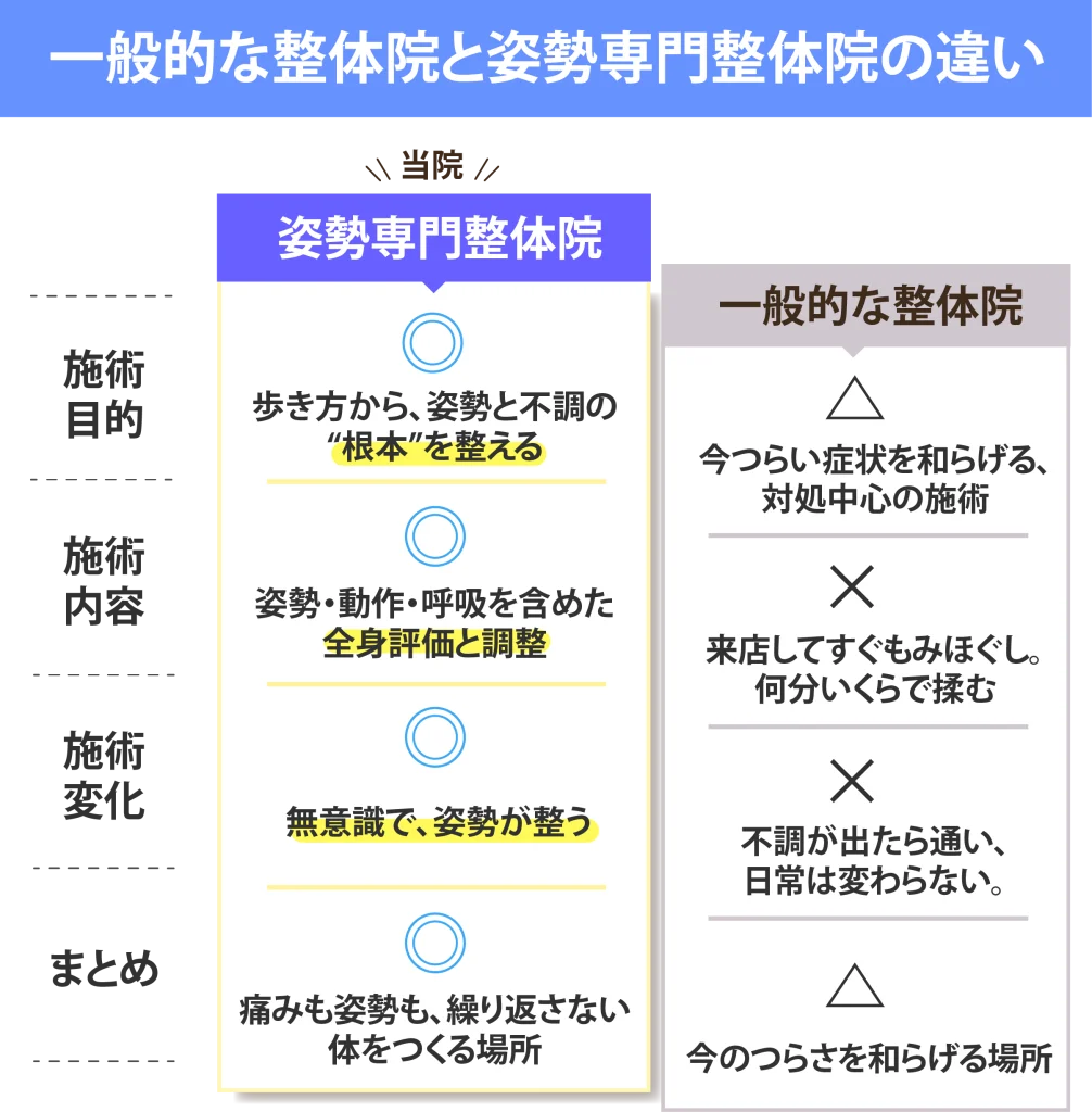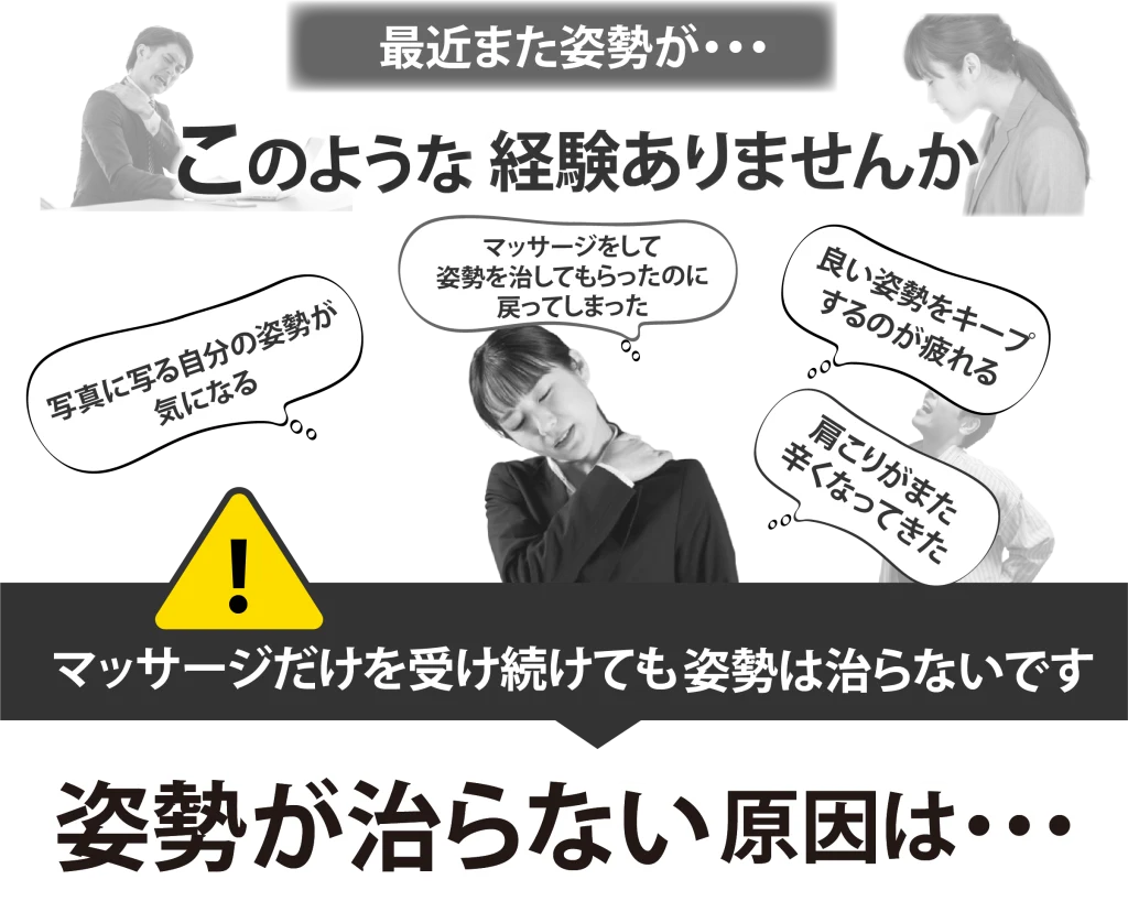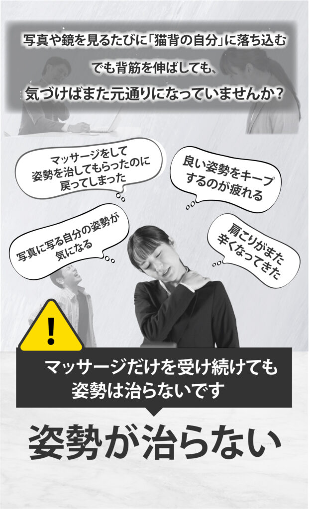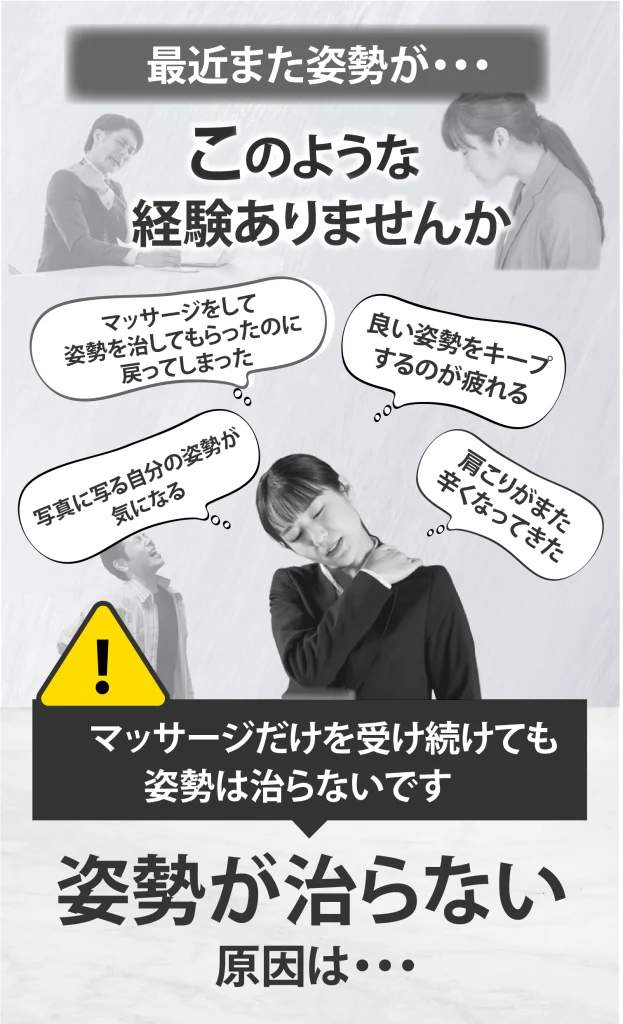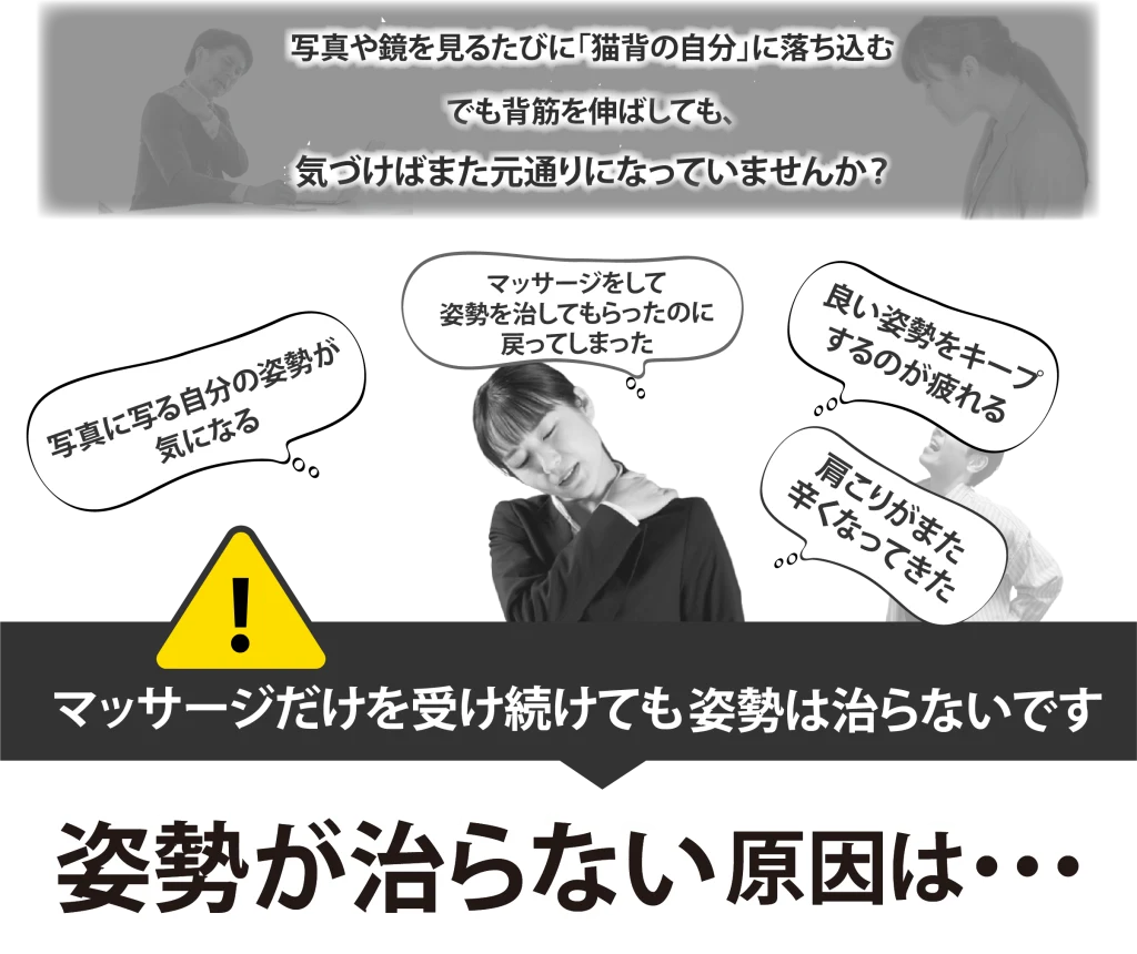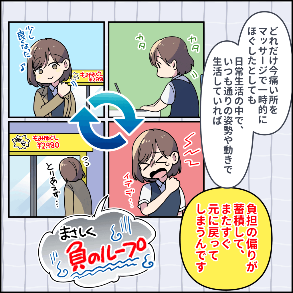 「マッサージを受けて一時的にスッキリした」ではなく 姿勢矯正はこれ以上つらくならないための時間です。