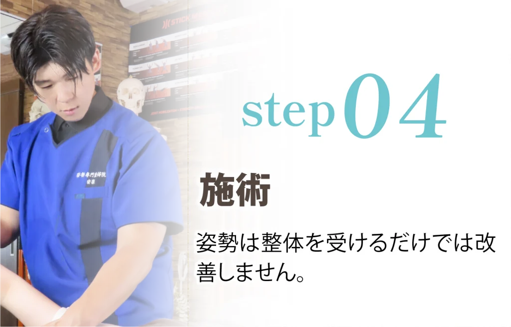 姿勢矯正実績3,000人以上の実績があります。寝て受けるマッサージだけでは一時しのぎになってしまいます。
