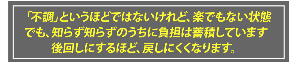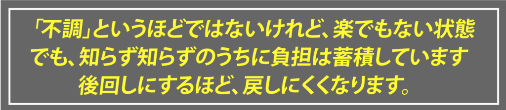 多くの場合は、小さな“負担”が、気づかないうちに積み重なっていきます。