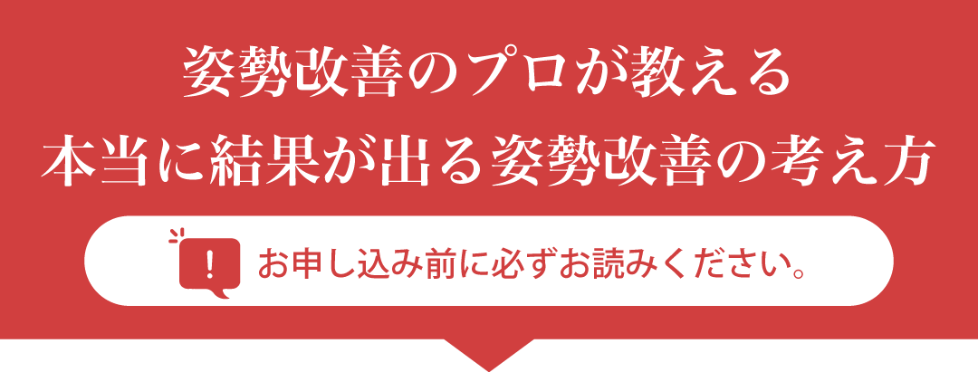 必ず、以下の「姿勢改善のプロが教える本当に結果が出る姿勢改善の考え方」をお読みの上、お申し込みください。
